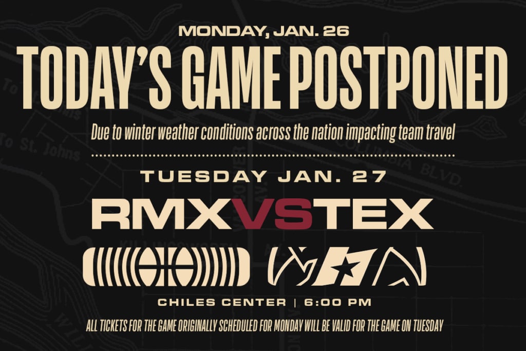 The Rip City Remix and the NBA G League have postponed tonight’s home game vs. Texas Legends at 6:00 p.m. due to winter weather conditions impacting team travel. The newly rescheduled time for this game is tomorrow, Jan. 27 at 6 p.m. at Chiles Center.
